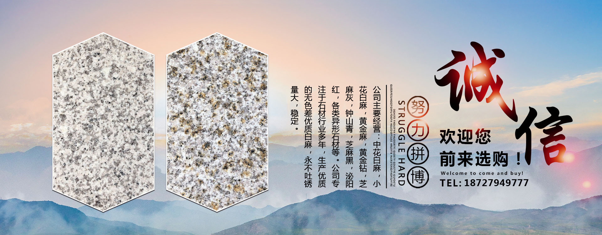 我廠主要經(jīng)營(yíng)中花白麻,小花白麻,黃金麻,黃金鉆,芝麻灰,鐘山青,芝麻黑,泌陽(yáng)紅,各類(lèi)異形石材等;類(lèi)目繁多。